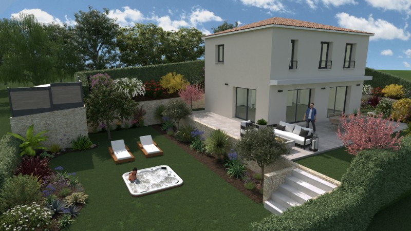 La villa DESIGN à créer bénéficie de larges ouvertures lui conférent une excellente luminosité. Elle se compose au RDJ d'un grand séjour / salle à manger / cuisine à l'américaine en open space avec cellier attenant à la cuisine et un WC indépendant.