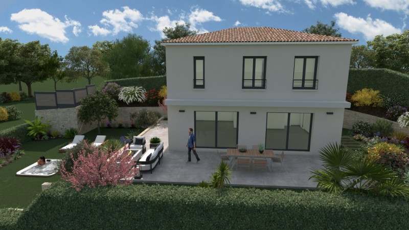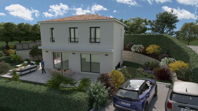 La société de construction de villas individuelles : LES BASTIDES / TRABECO / BALENCY vous propose une villa neuve de 102 m2 habitable à étage aux dernières normes RE2020 sur un terrain de 440 m² à vendre sur la commune de Saint Laurent du Var.