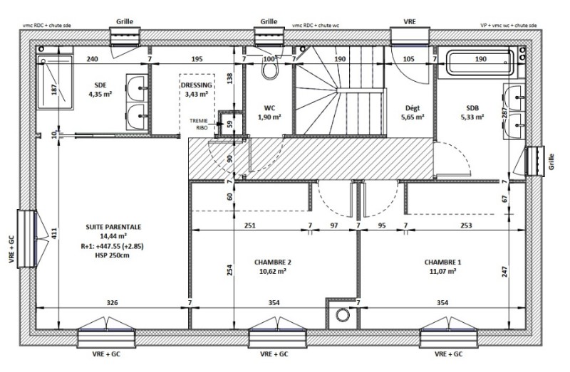 A l'étage : 3 chambres ainsi qu'une grande salle de bains et un autre WC indépendant.